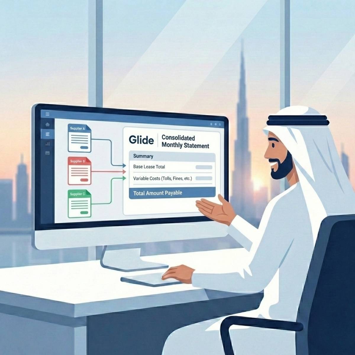 You keep leasing from licensed UAE partners. Glide focuses on how the combined setup behaves.